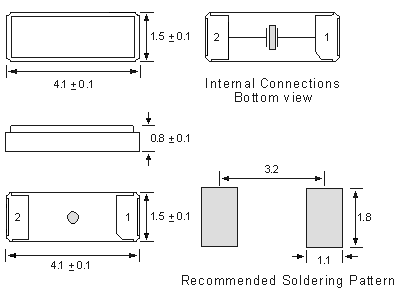 • SMD in ceramic case (4.1 x 1.5 x 0.8) mm